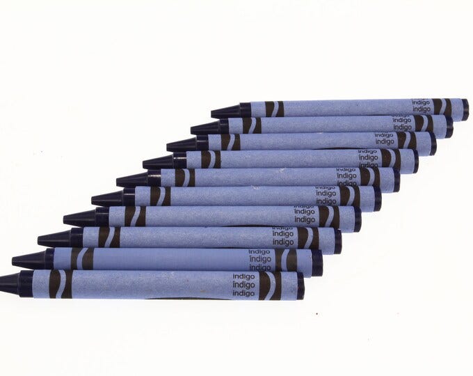 Every Friday afternoon, “64 to Infinity: Love Letters in Crayon” will illustrate the long, strange story of humankind in one of the 64 colors that make up this world-famous primary palette. This week holds ample interest across art and science, drawing the two together like perhaps no other crayon in the box…after all, it was Issac Newton’s favorite. You are invited to indulge all of us in this week’s love letter to Indigo!